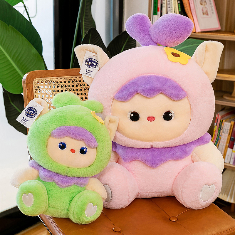 超萌森霊動物ぬいぐるみの女の子が枕鹿宝イネの誕生日プレゼントをなだめる