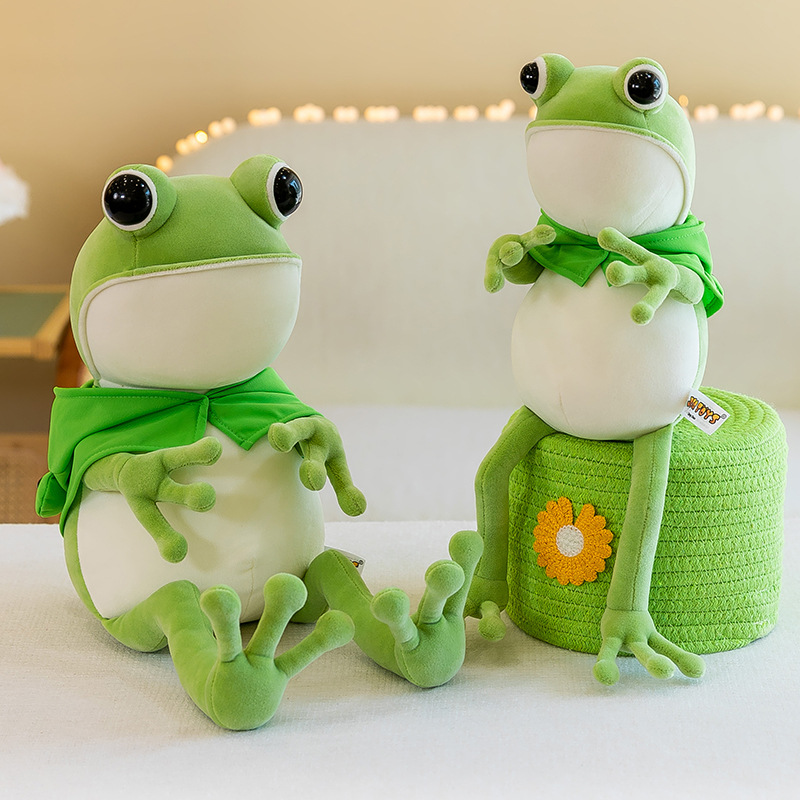 かわいいマントのカエルのぬいぐるみの仕事の付き添い人形の子供は枕を抱いて家の置物の贈り物の卸売りをなだめます。