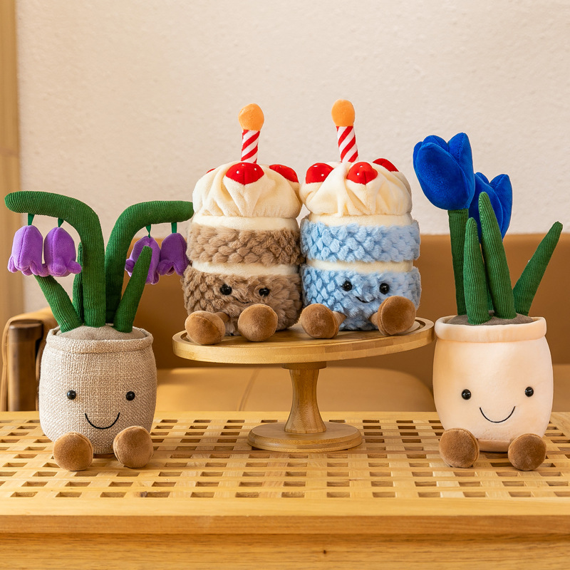 かわいいシミュレーションの誕生日ケーキのぬいぐるみの花のチューリップの鉢植えの事務机の置物の活動の贈り物の卸売り