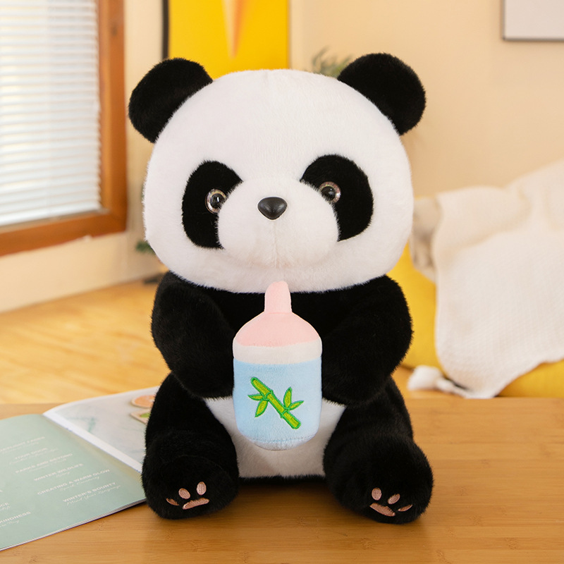 かわいい哺乳瓶パンダのぬいぐるみ子供が食事をして枕を抱く人形のベッドの飾り卸売りをなだめる