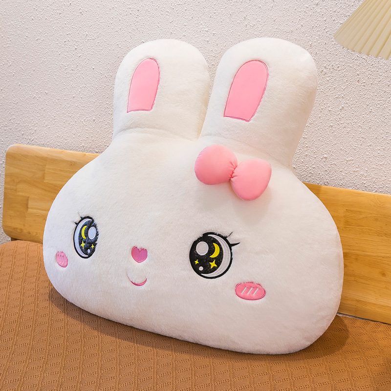 甘い白兎のぬいぐるみのベッドの上に枕のソファーのクッションが漂っています。