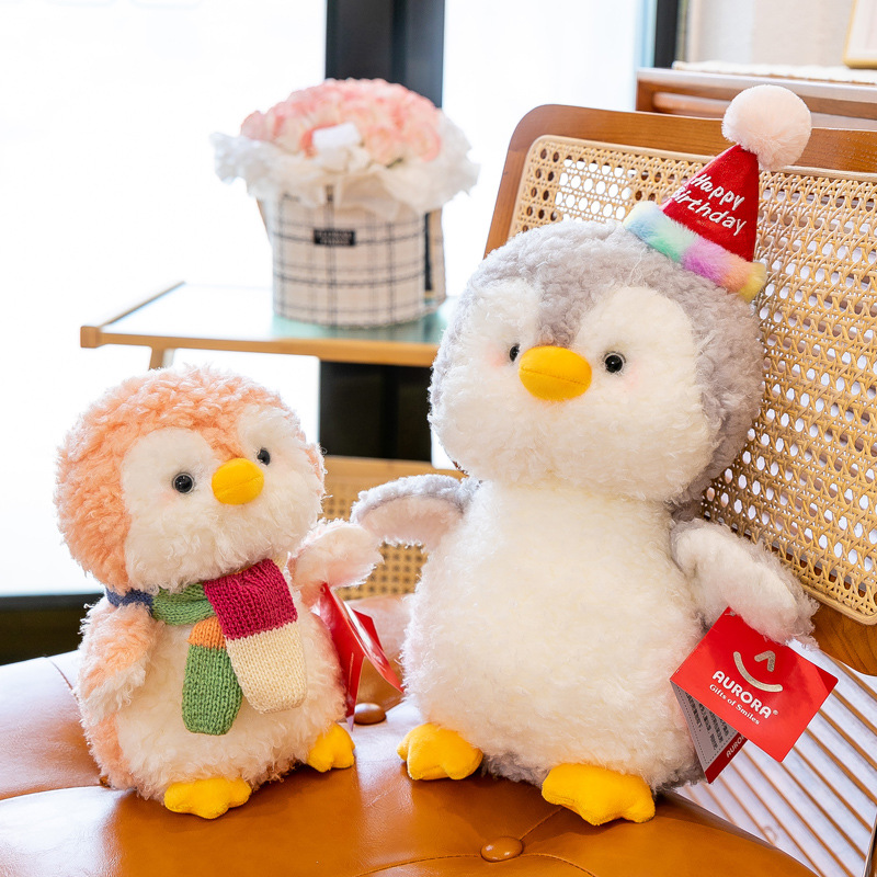 萌え寵愛派はペンギンのぬいぐるみ子供の誕生日にプレゼントをします。