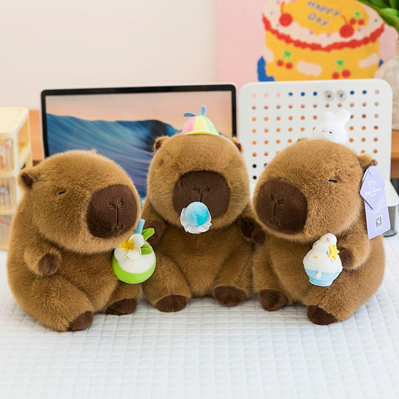 卡通夏日冰激凌水豚毛绒玩具儿童玩偶椰汁卡皮冰沙布娃娃旅游纪念