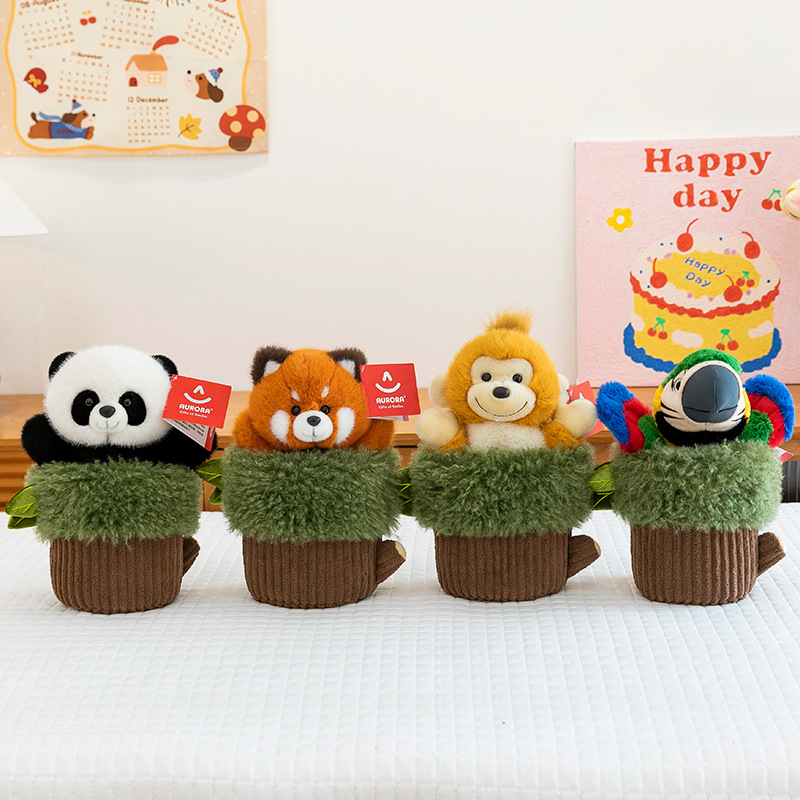 新しいジャイアントパンダ木の切り株ハンドパペットぬいぐるみ猿鉢植え装飾品子供のパフォーマンス小道具オウム人形卸売