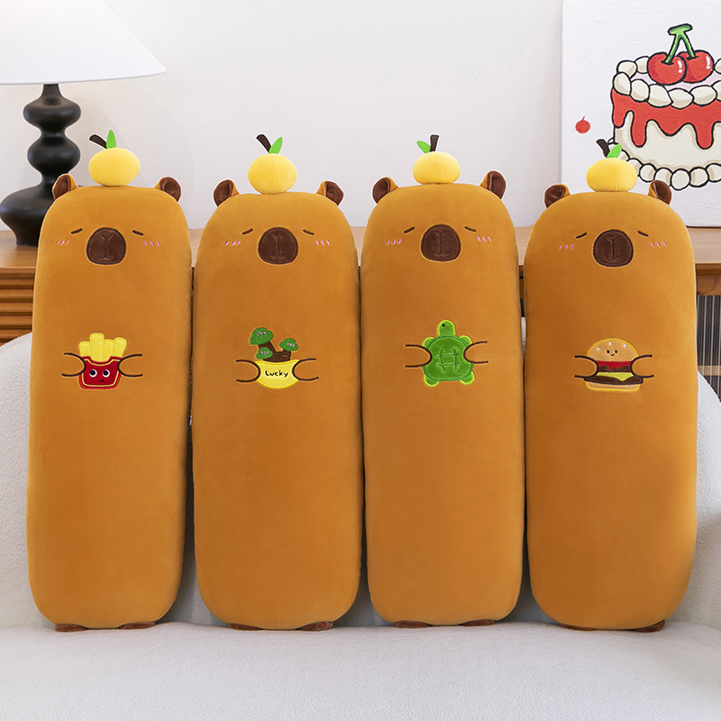 卡通乌龟水豚长条睡觉抱枕办公腰靠薯条汉堡卡皮毛绒玩具侧睡枕批