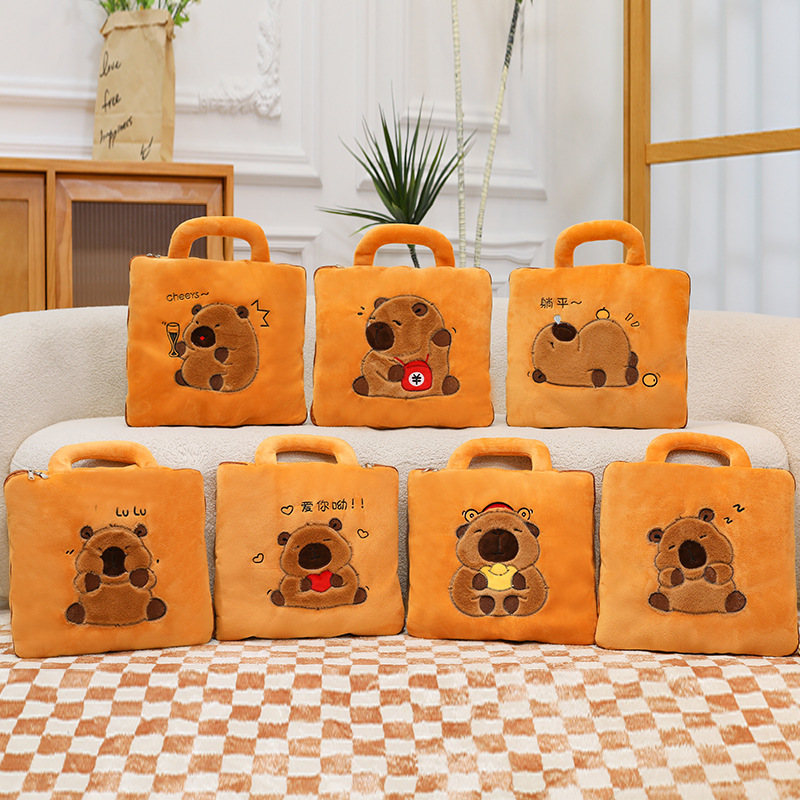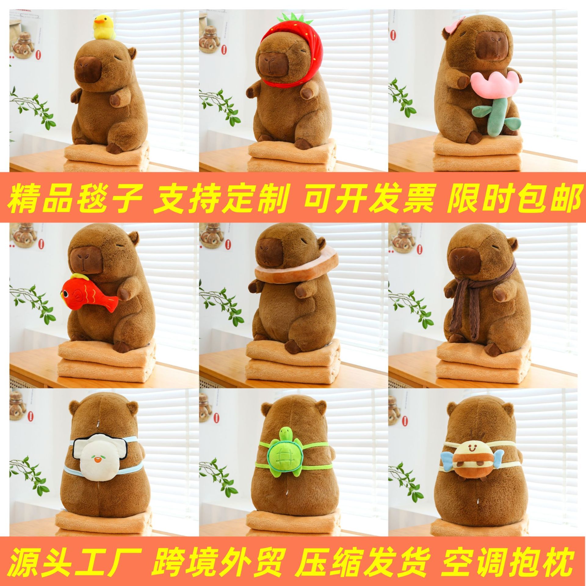 跨境围巾水豚毛绒玩具女生宿舍卡皮抱枕睡觉空调被办公两用午睡枕