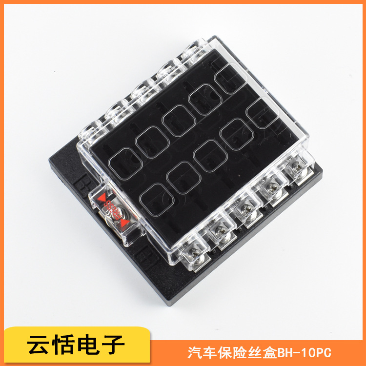 BH-10PC自動車多路ヒューズボックス | 1進10出透明カバー付き自動車インサート10路保険ボックス