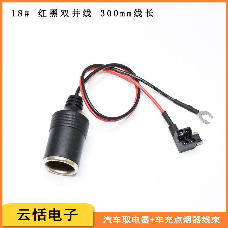 自動車インサート取電器帯2芯18 # 番線赤黒車充電シガレット母座フォーク栓負極300mm線