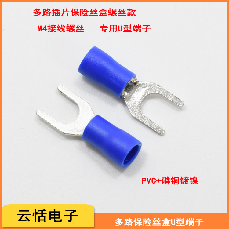 U型端子ブルーpvcリン銅錫メッキフォーク型端子多ソケットヒューズボックスm4専用14 #-20 #
