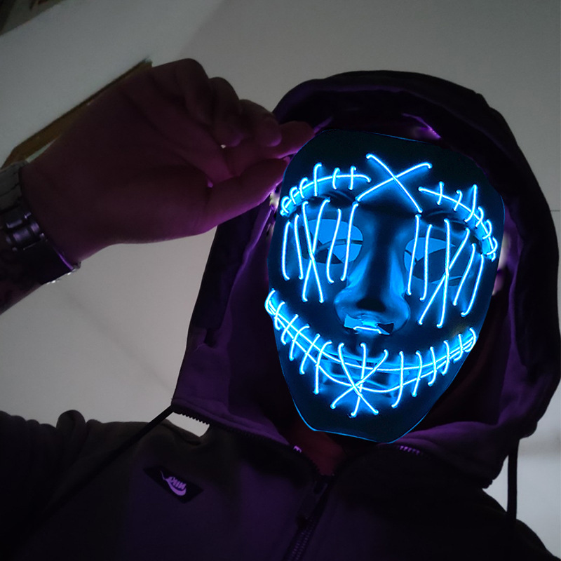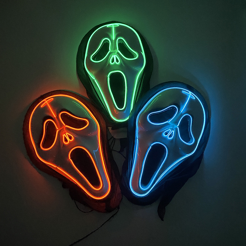 クロスボーダー縫い口悲鳴発光マスクハロウィーン十字悲鳴LEDホラー発光鬼マスク雰囲気道具