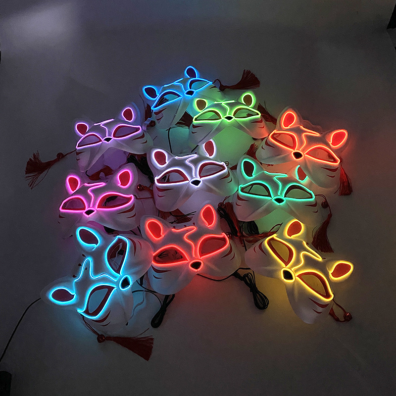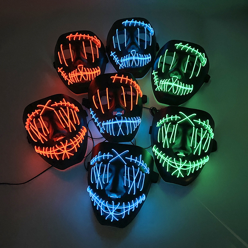 新型ハロウィーンホラー発光ledマスク怖いフォーク黒い顔マスク蛍光鬼ステップダンス道具