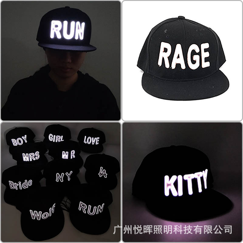 新型ledカジュアルアルファベット発光野球帽舞台パフォーマンス電気音節ヒップホップ