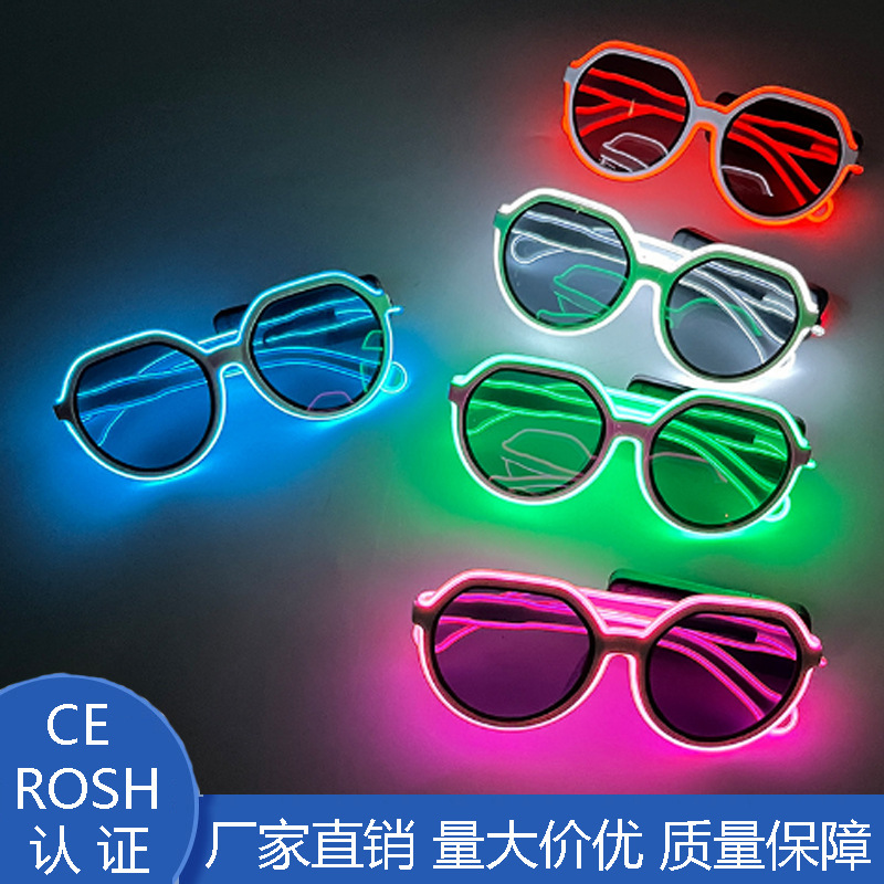 LED発光眼鏡バーKTV夜場装備眼鏡EL発光眼鏡楕円形レトロファッション墨片鏡