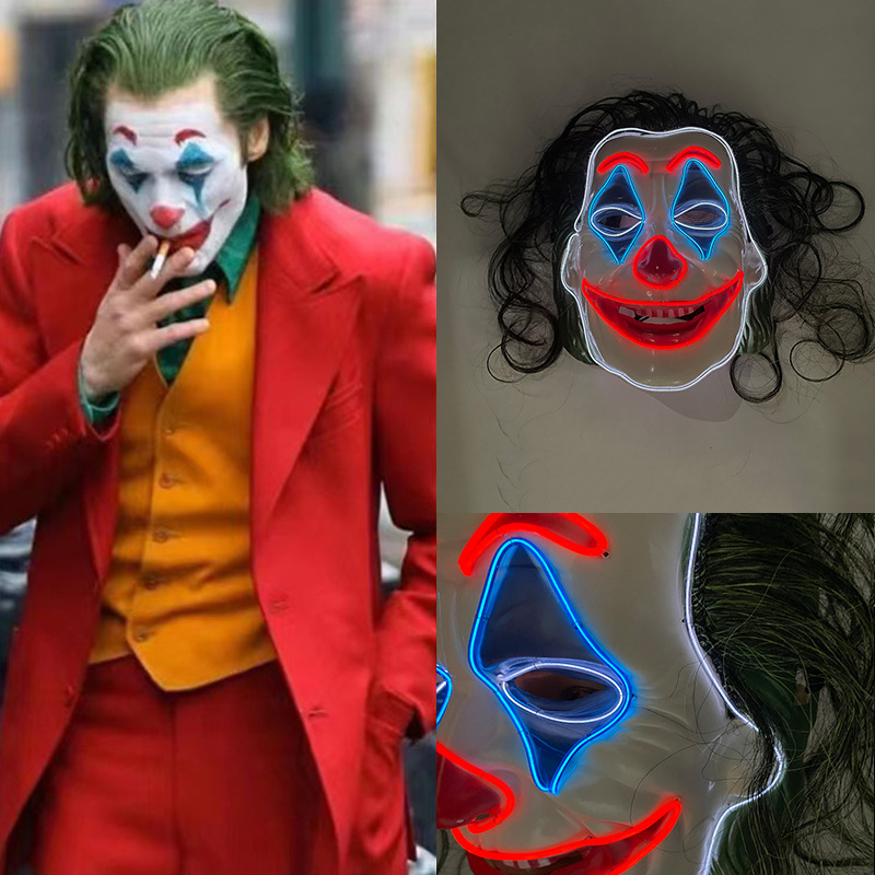 LEDピエロ緑毛発光マスクハロウィーンjoker映画テーマホラーカールピエロ発光マスク