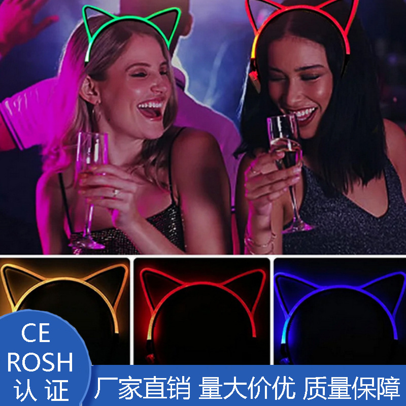 夜市LED発光頭飾り祝日祝いパフォーマンスパーティー多色LEDカラフル猫耳発光カチューシャ