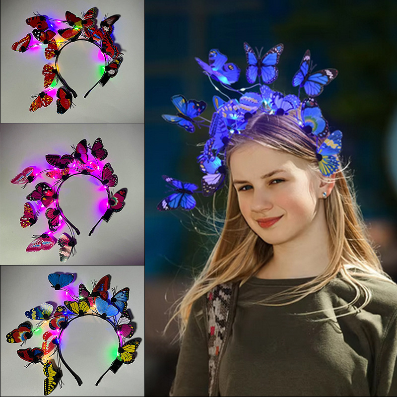 森系仙美カチューシャLED発光七色蝶々カチューシャ演出ショーステージ飾り蝶々カチューシャ髪飾り