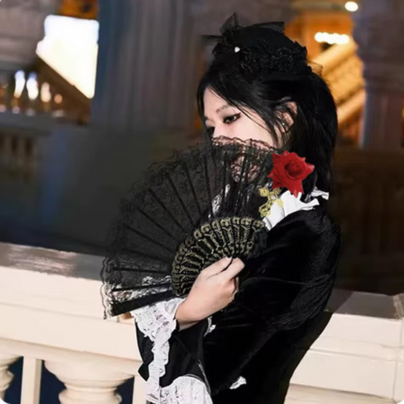 新しいlolitaレース扇子の華麗なレトロなヨーロッパ式のバラの扇子の茶会の項の暗黒の漫展のcosの道具