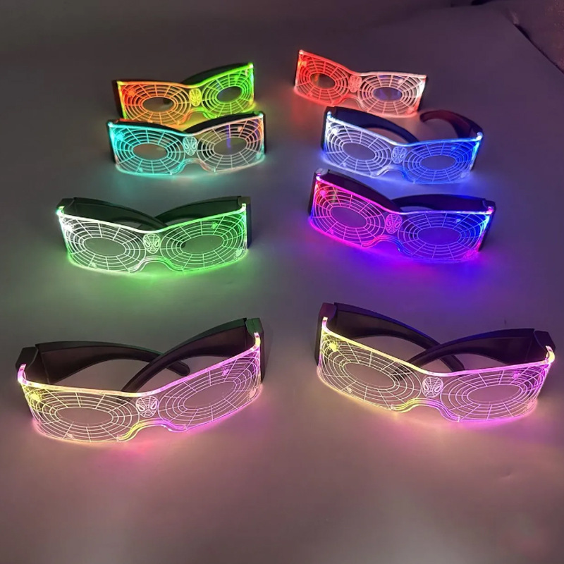 サイバーパンク七彩発光眼鏡科学技術感スパイダーマンLED折り畳み発光眼鏡バー雰囲気道具