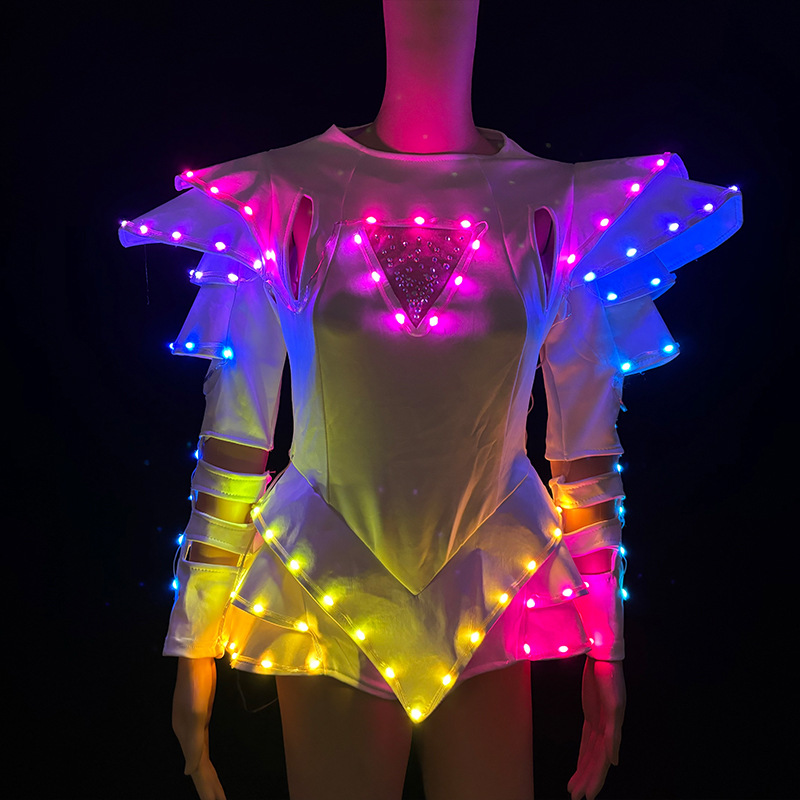 LED発光DJ白襟ダンス服セクシー大気女性歌手連体バー舞台発光道具演出服