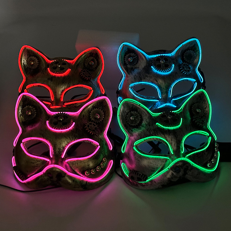 クロスボーダー専用ギア猫フェイスled発光ハーフフェイスマスクヘッドセットスチームパンクハロウィーンメイクエルアイテム