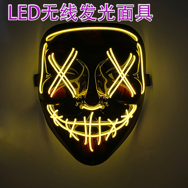 ハロウィーンelワイヤレス発光マスクホラースリラーledブラックv字マスクパーティーマスク雰囲気アイテム