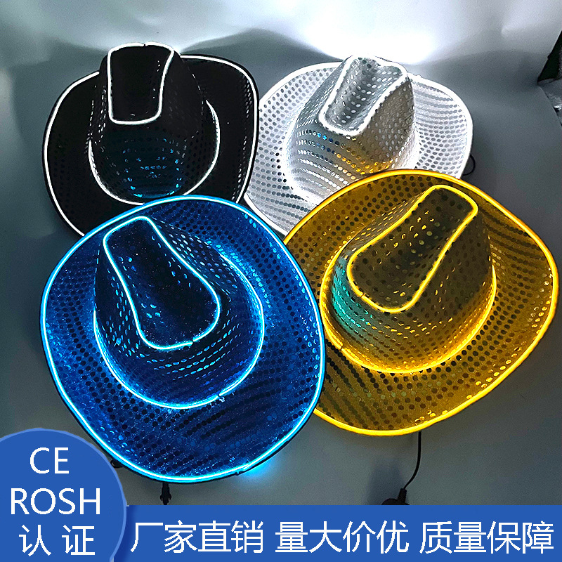 Led発光スパンコールカウボーイ帽浮かれ騒ぎ祝日派対帽道具西域風情西部発光カウボーイ帽