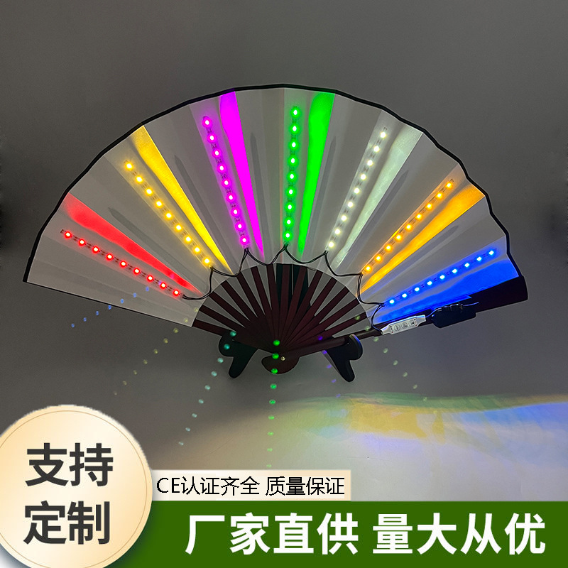 バーKTV雰囲気パフォーマンスダンス折り畳み扇子応援道具5V充電可能七彩LED発光扇子