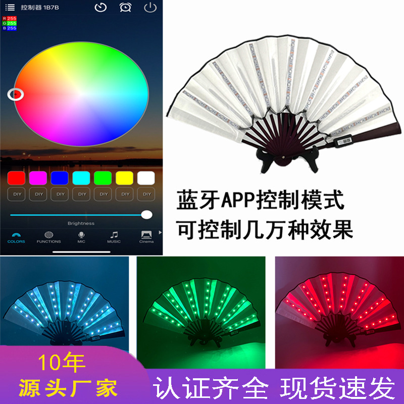 爆型led発光扇子バートランポリン雰囲気道具ネット赤夜光布男女幻彩led扇子道具