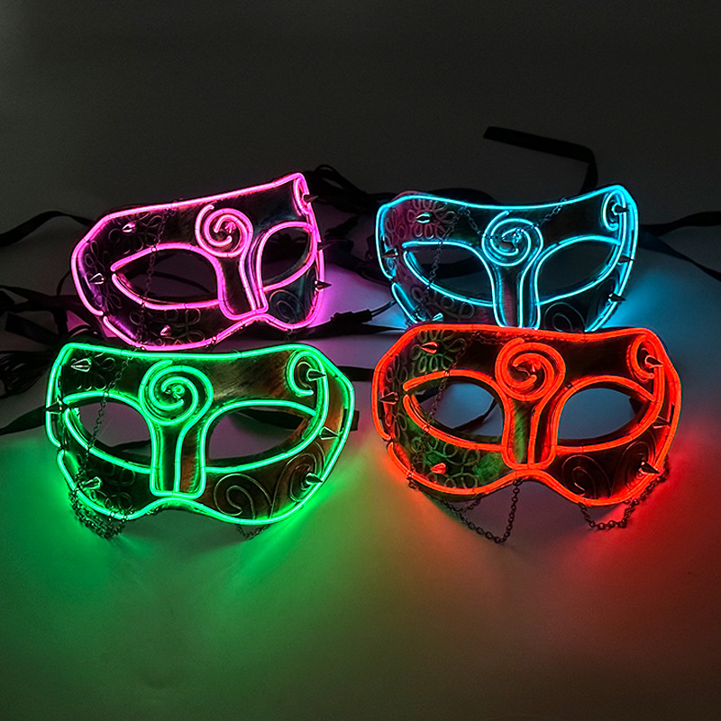 クロスボーダー热い贩売ハロウィーンスチームパンクマスク半分颜矢印チェーンled発光マスクカーニバル小道具