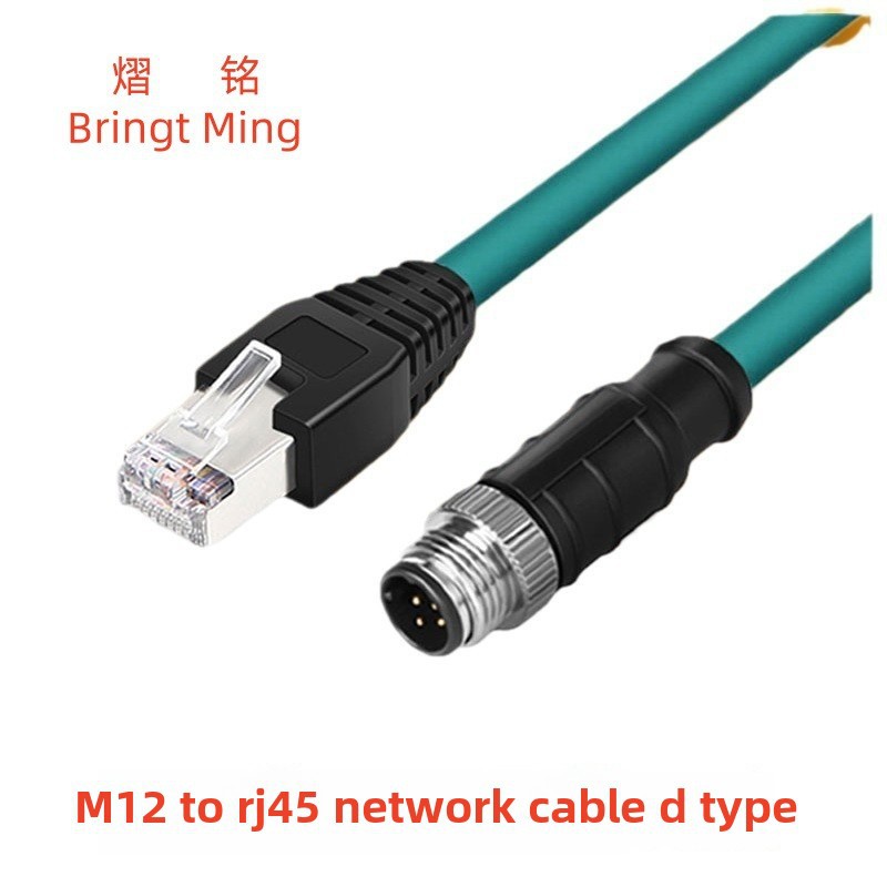 M 12回転rj45ストレートケーブルd型4針六類高柔イーサネット双シールドコードセンサ線純銅