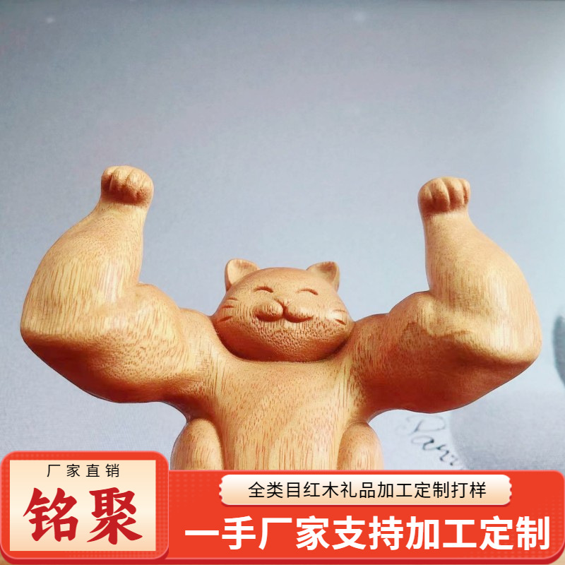 Mingju 黄金白檀彫刻猫、強力な猫、オープニングギフト、小さな装飾品、筋肉猫、インターネット有名人、フロントデスク、幸運のクリエイティブ