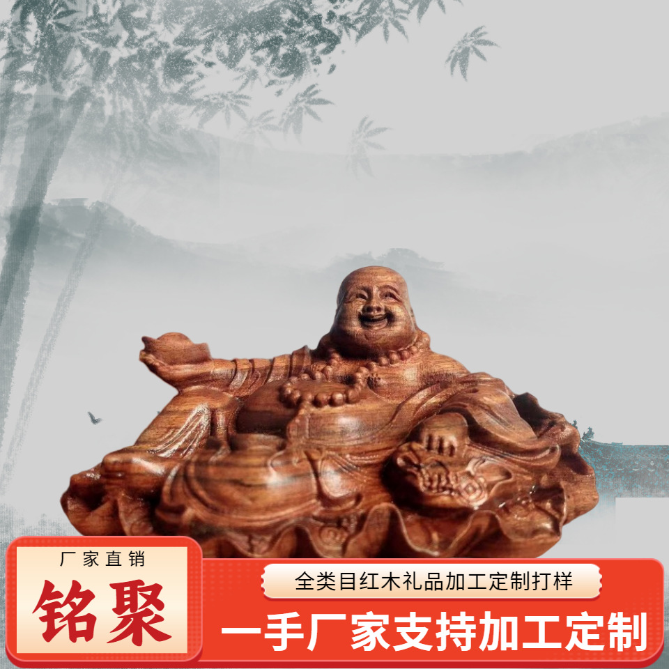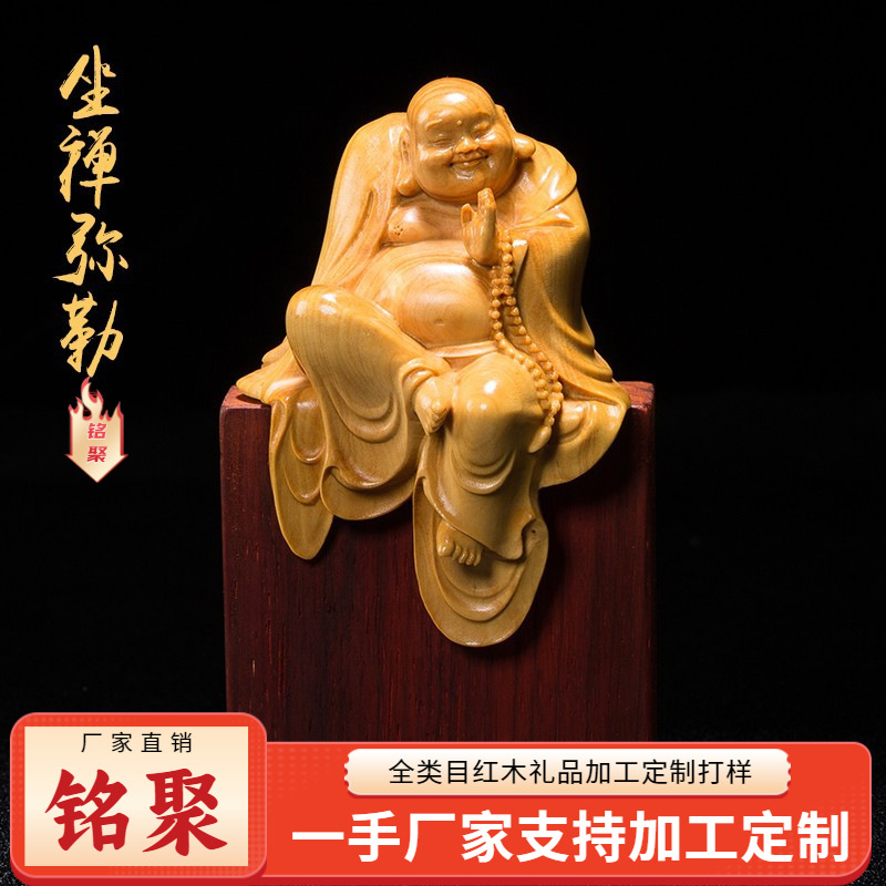 Mingju クスノキ木彫りハンドピースリビングルーム仏像弥勒装飾品彫刻工芸品無垢材中国禅瞑想