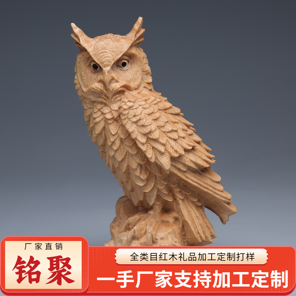 Mingju クスノキ木彫りフクロウ小さな装飾品リビングルームの装飾中国無垢材彫刻クラフトギフトホームインテリア