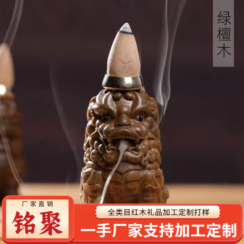 Mingju 緑白檀貔貅彫刻逆流香装飾品家庭学習香炉寝室アンティーク沈香禅香