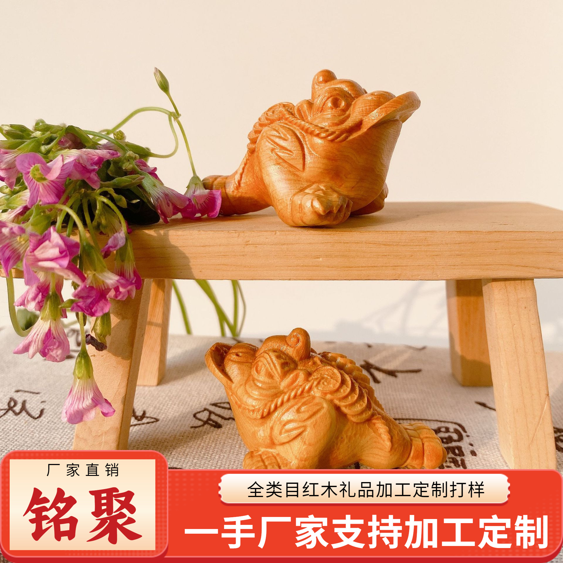 Mingju クスノキ彫刻ゴールデンカエルハンドピース、ポータブルハンドピース、車の装飾品、家の装飾