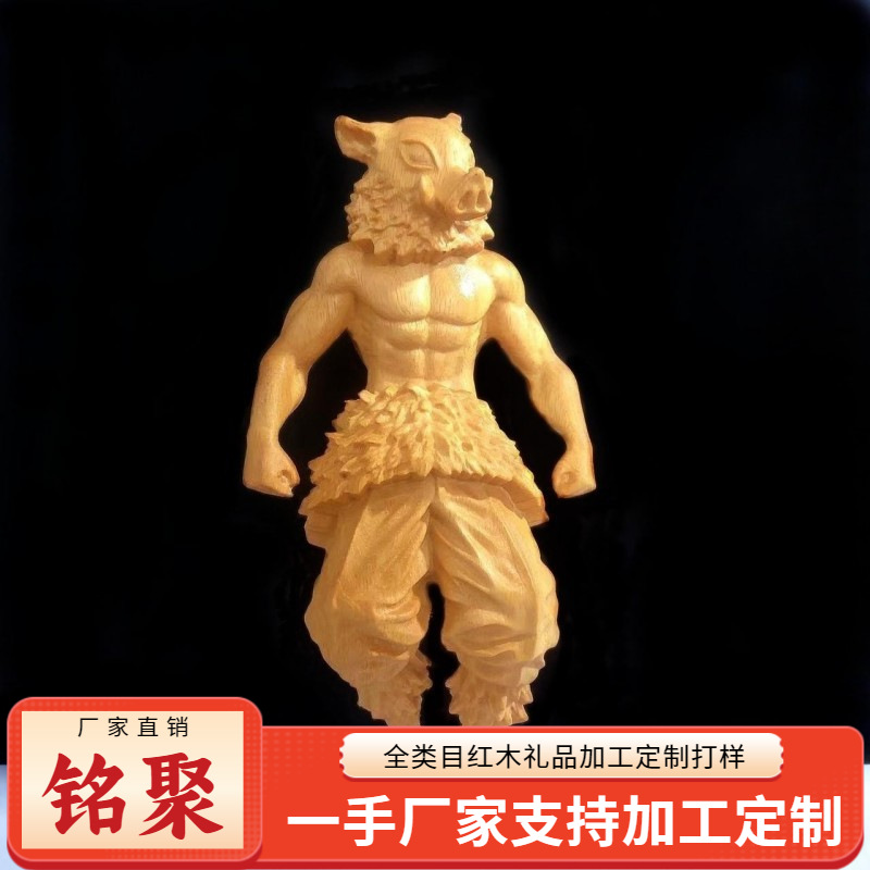 Mingju 黄金白檀彫刻少年豚頭クリエイティブデスクトップ装飾品ボーイフレンドの誕生日プレゼント用強力な力士オオカミ豚の手