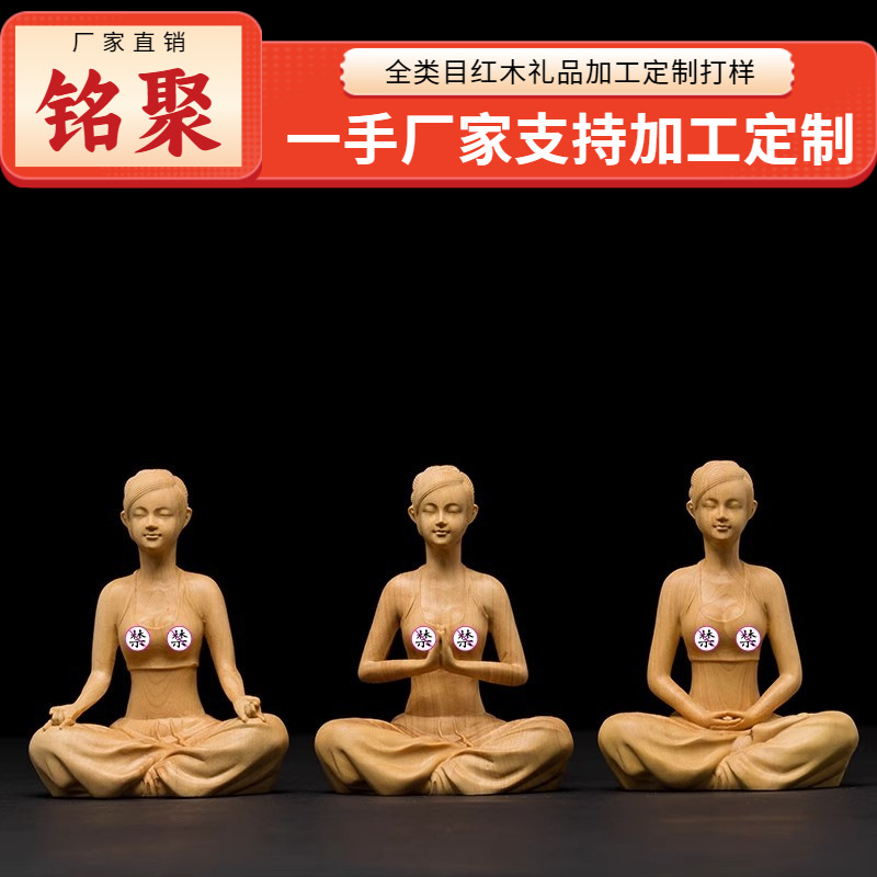 Mingju 黄金白檀彫刻ホームヨガ工芸品家の装飾装飾品美容フィギュアおもちゃ禅工芸品