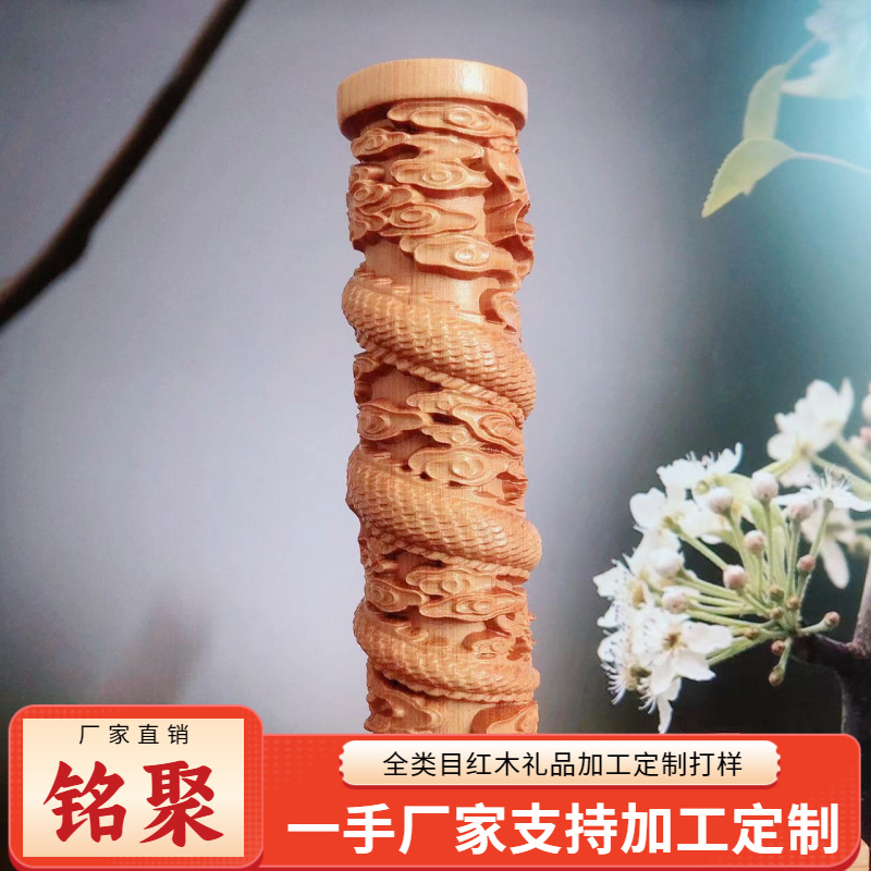 Mingju Taihang クロービア材彫刻ドラゴンコラムハンドピースドラゴン干支ドラゴン工芸品装飾品富を引き寄せるオフィス装飾