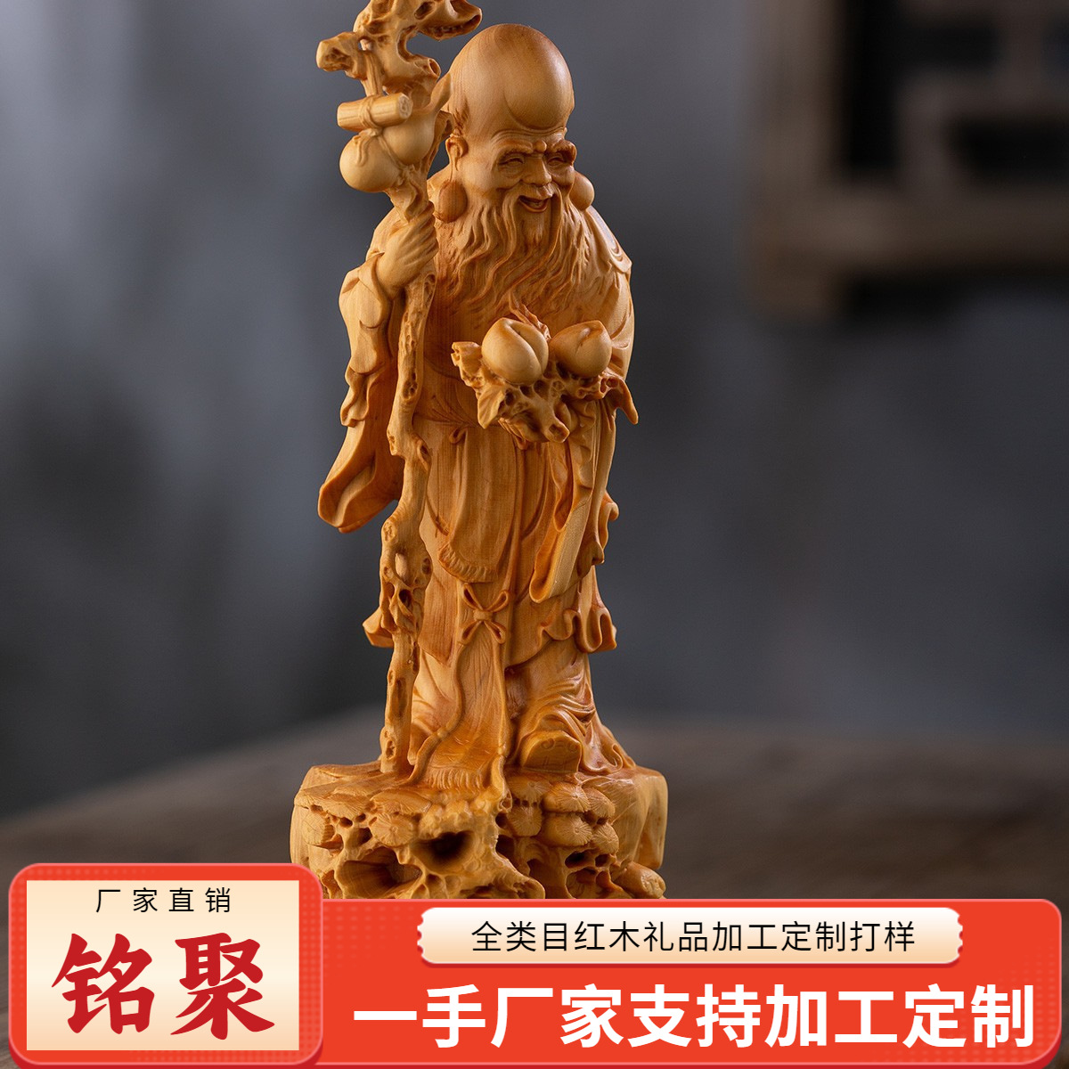 Mingju バクサス木彫り無垢材フィギュア長寿工芸品誕生日ギフト風水リビングルーム仏像装飾品