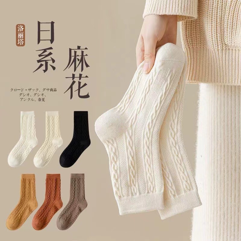 Jk厚い麻花靴下の子供の中筒春秋森系百合純色保温月子靴下ins潮山靴下