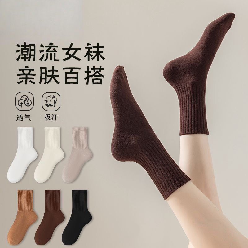 靴下レディースins潮百合日系純色中長筒春秋モデル保温運動防臭靴下