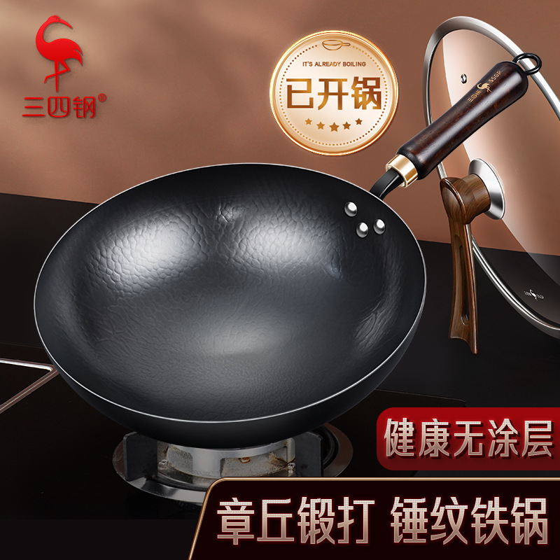 三四鋼鉄鍋家庭用章丘旧式高純鉄鍛造ハンマー丸底炒め鍋炒め鍋