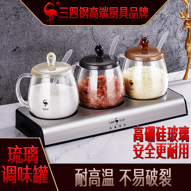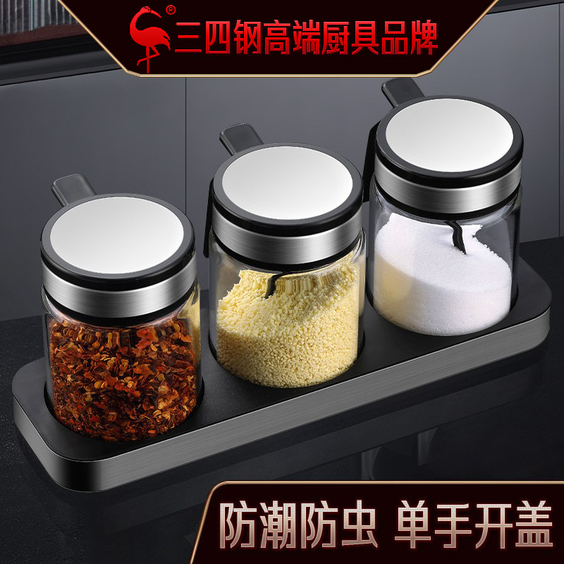 三四鋼調味料箱セット家庭用ガラス瓶塩缶密封缶器高温厨房防湿調味料瓶