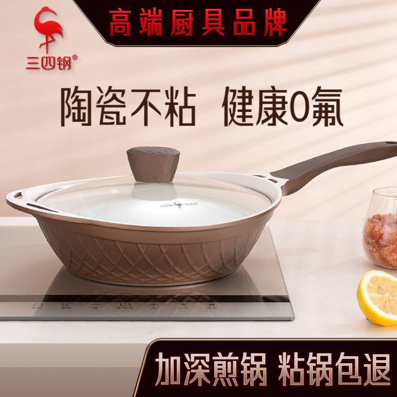 34 スチールフライパンガスストーブポットセラミック層フライパンノンスティックポット家庭用オムレツパンケーキステーキフライパン