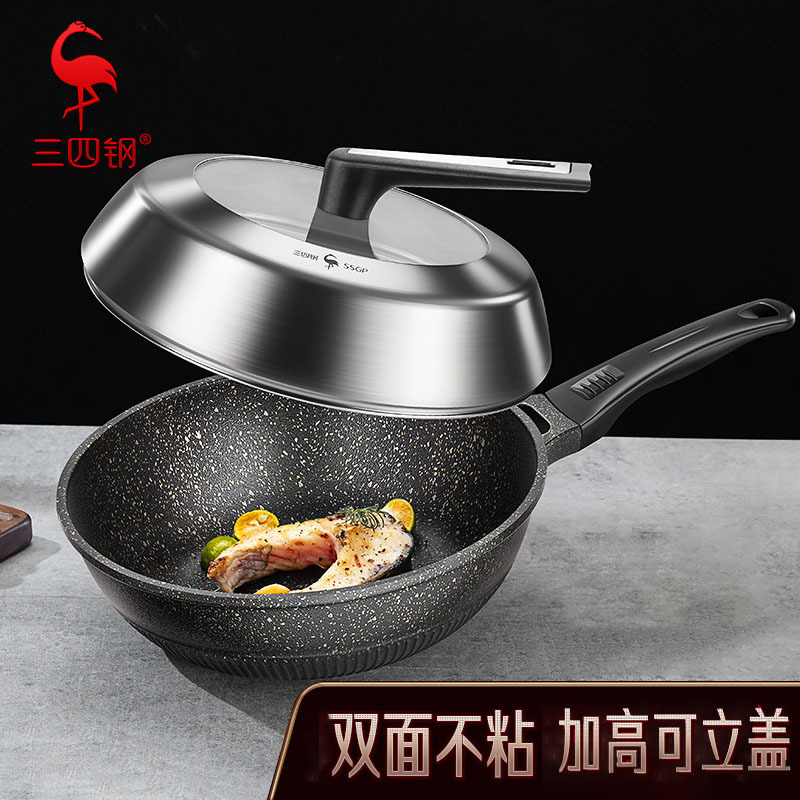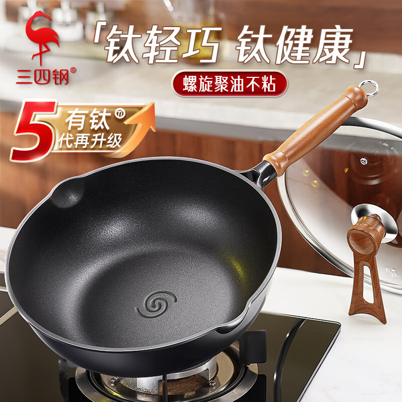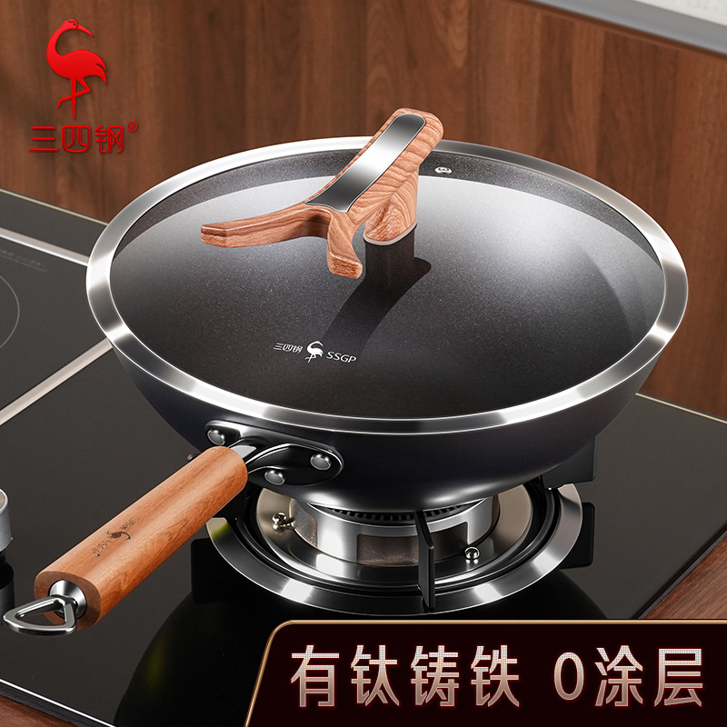 三三四鋼チタン鋳鉄中華鍋無塗装大容量中華鍋家庭用キッチン防錆鍋鉄鍋