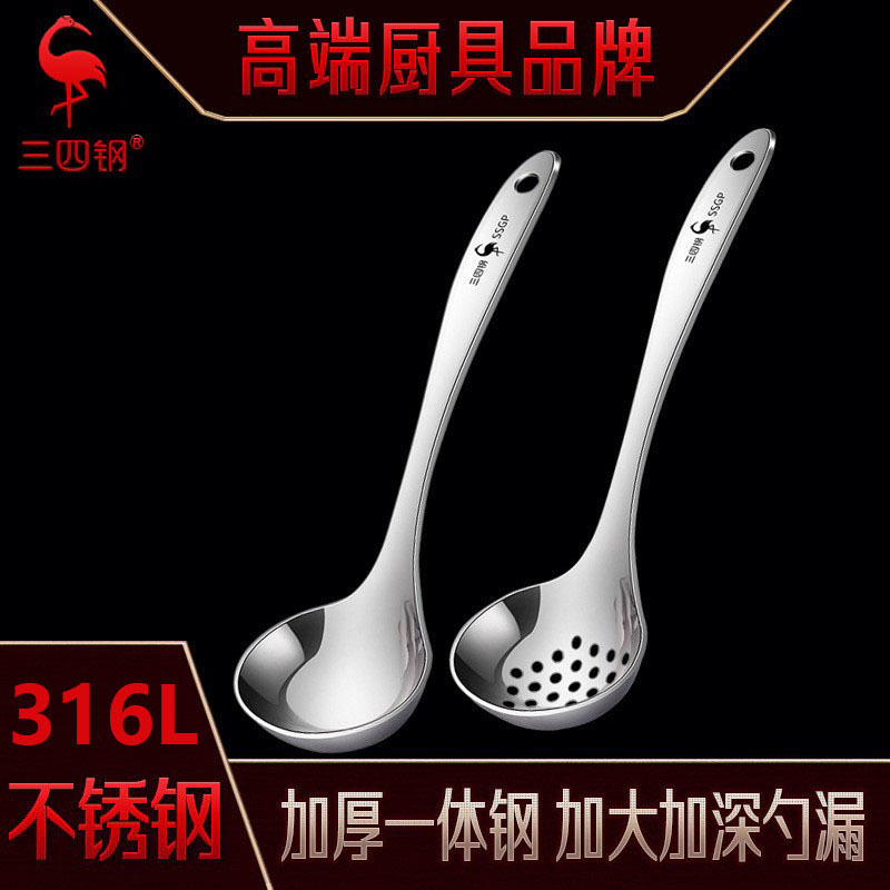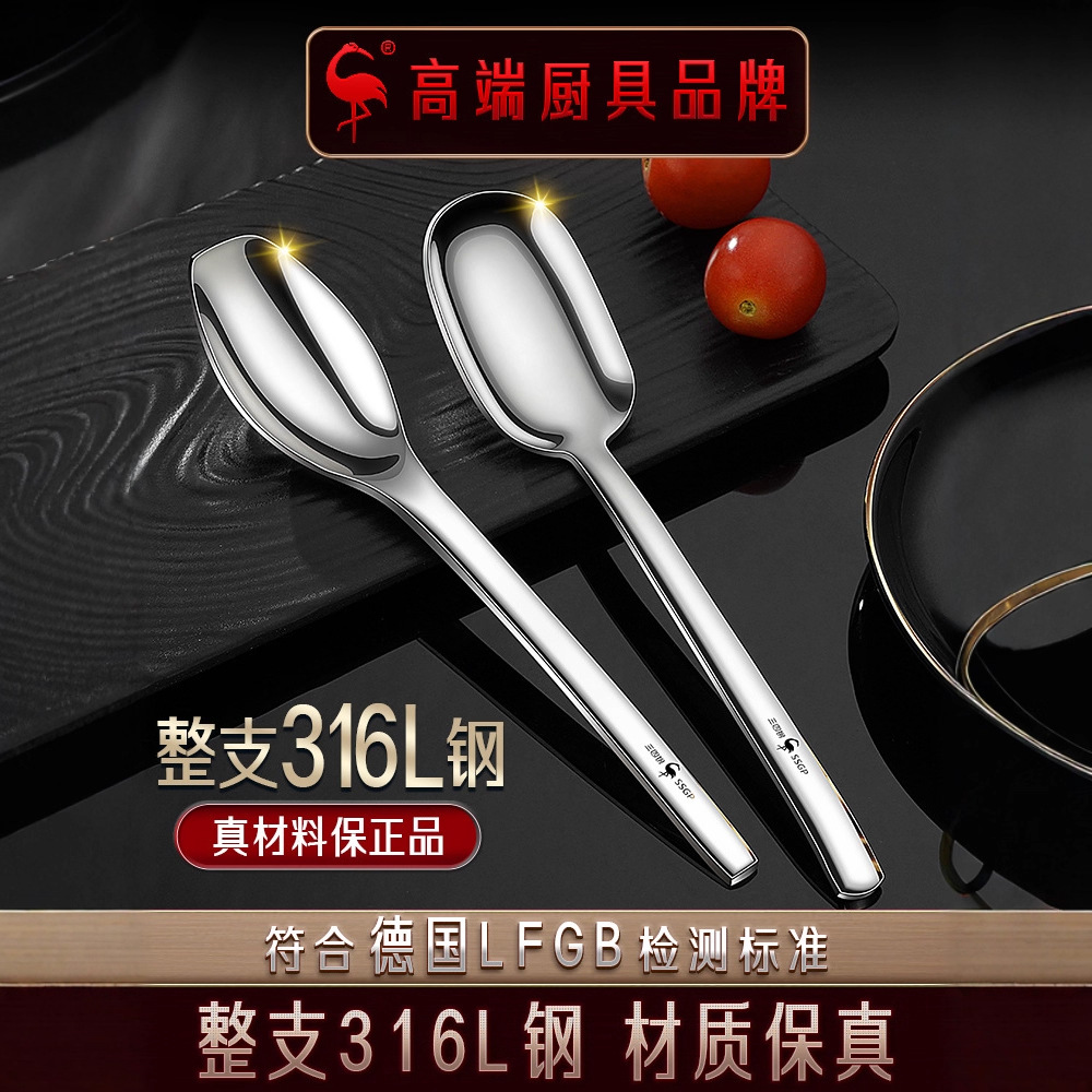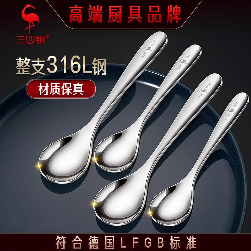 三四钢®316L不锈钢勺子家用厨房精致调羹甜品勺吃饭喝汤长柄勺子