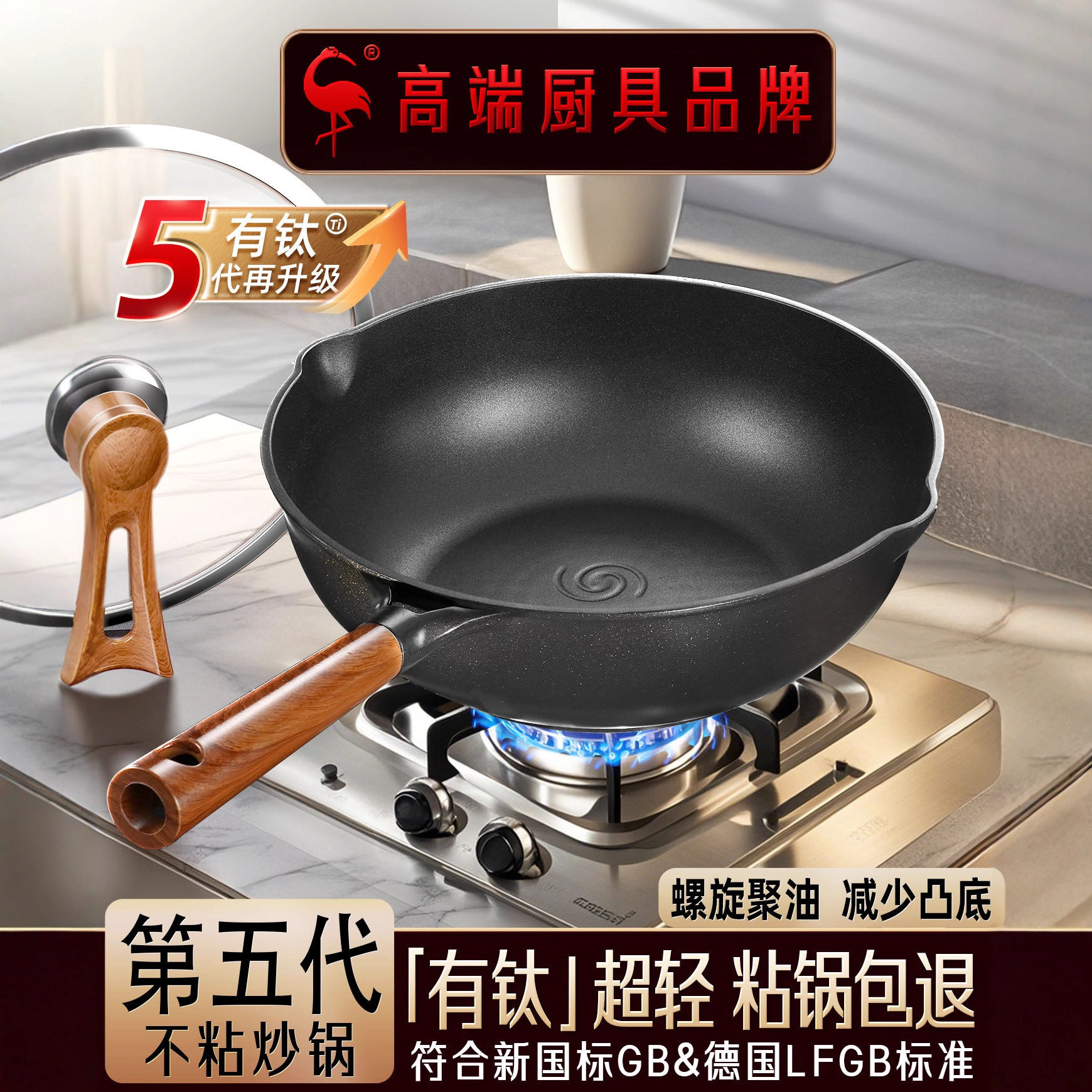 Sisiangang 家庭用キッチン中華鍋平底チタン合金中華鍋オムレツパン調理ユニバーサルノンスティック平底フライパン