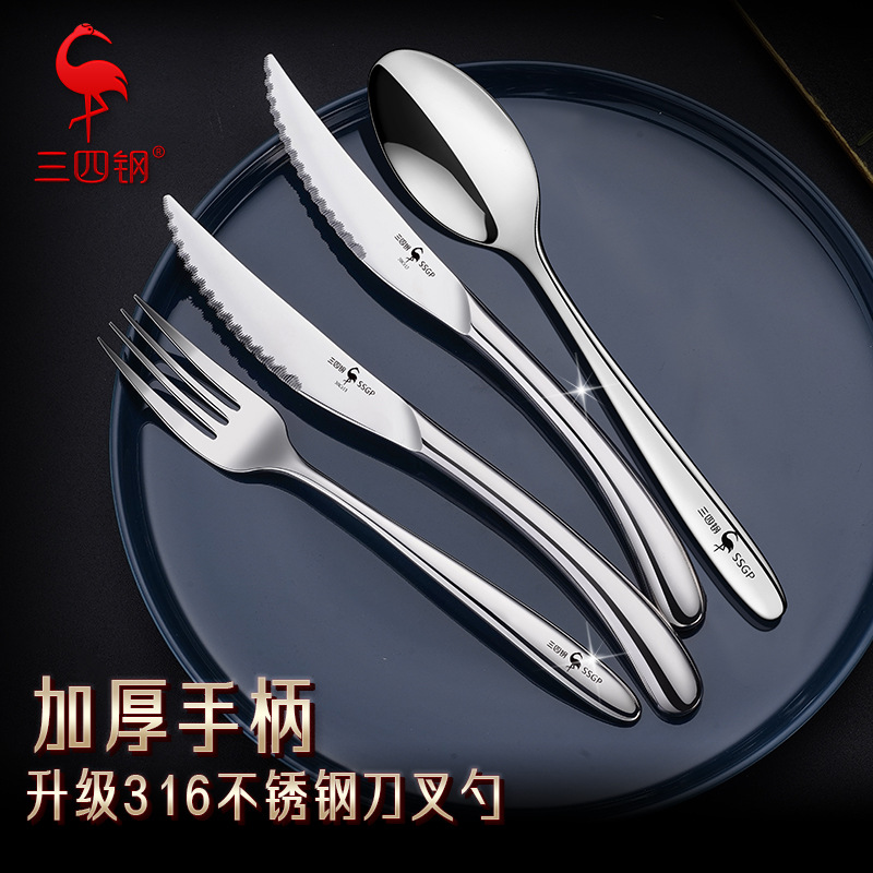 343 スチール食器 Douyin ヘッド人気 316 ステンレス鋼フォークとスプーン家庭用ナイフ、フォークとスプーン 3 点セット ナイフとフォークセット