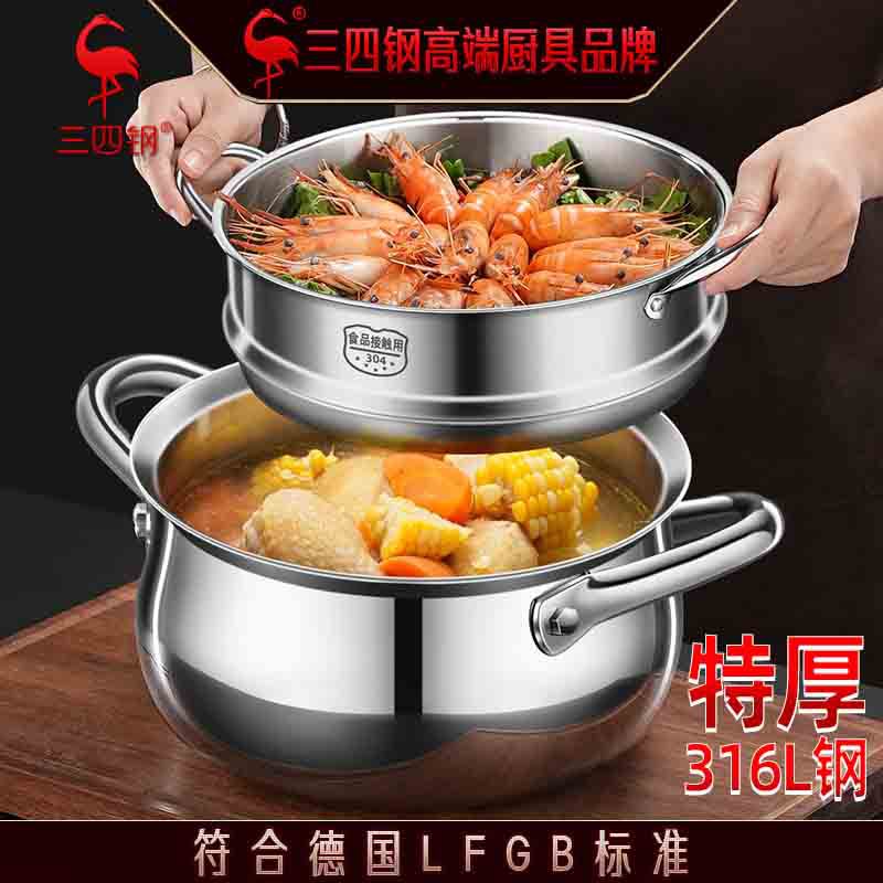 343 鋼スープポット Douyin ヘッド人気の 316L ステンレス鋼家庭用スープ電磁調理器蒸し器シチューポット調理鍋