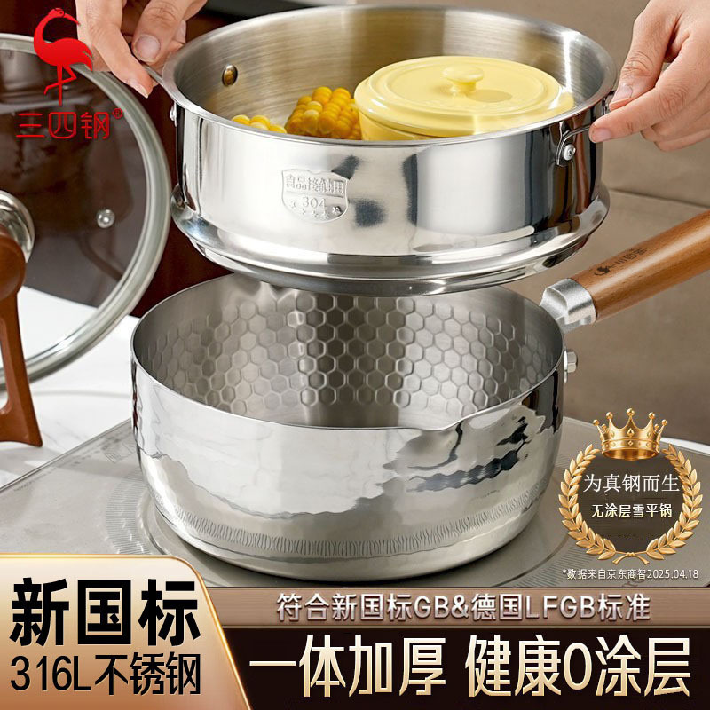 三三四鋼無塗装雪平鍋 316L 和風ミルクポット 蒸し器付き 食品グレード 小型スープポット 栄養補助食品調理インスタントラーメンポット